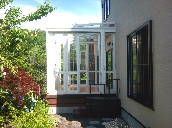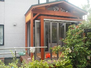 |     ↑ ガーデンルームを設置したい場所に、ちょうど屋根の雪が落ちるとのことで、なんと小屋根を作ってしまいました。